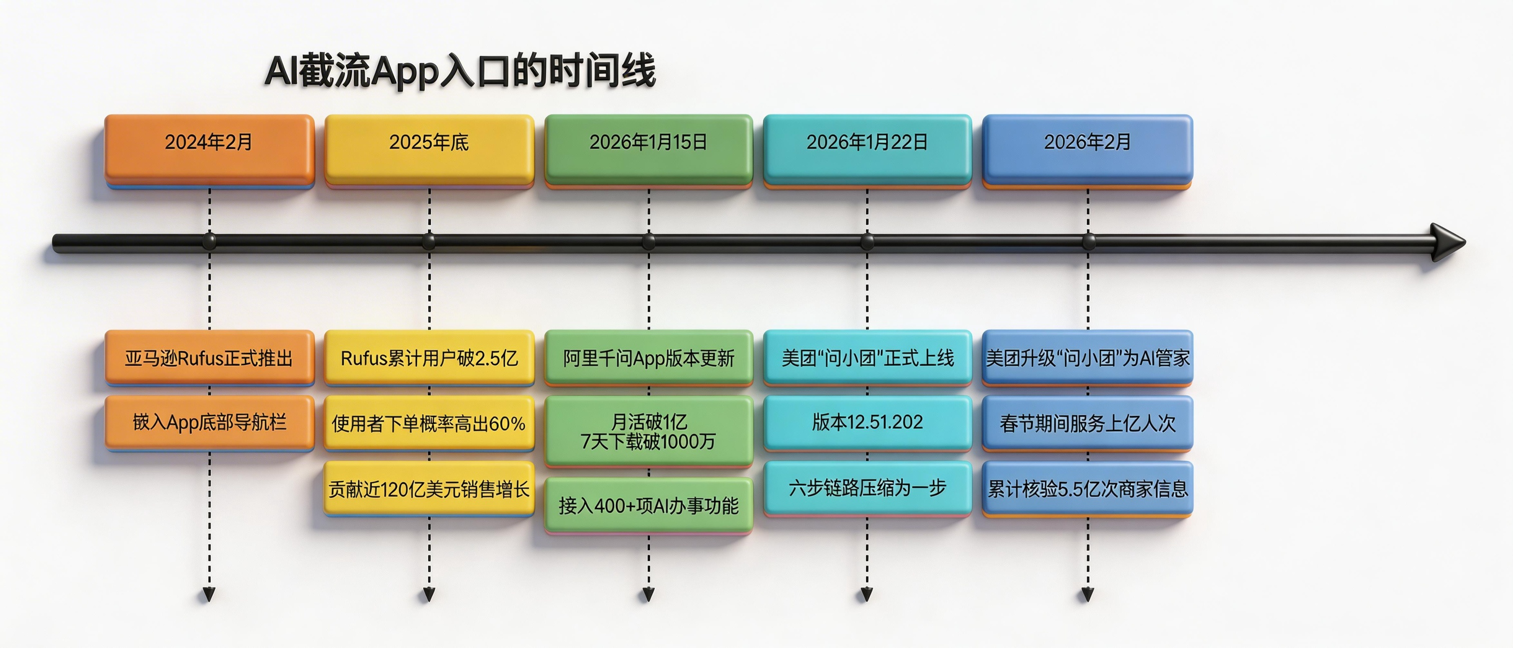 2026年1月,阿里千问App一次版本更新里,悄悄写了两个词:”去界面化”和”意图即入口”。这不是产品迭代,这是对过去15年App逻辑的一次宣判。当亚马逊Rufus用2.5亿用户证明”对话框里就能完成下单”,当美团”问小团”把六步链路压成一步——你的App,在这个过程里出现过吗?本文不讲趋势,只讲已经发生的事。