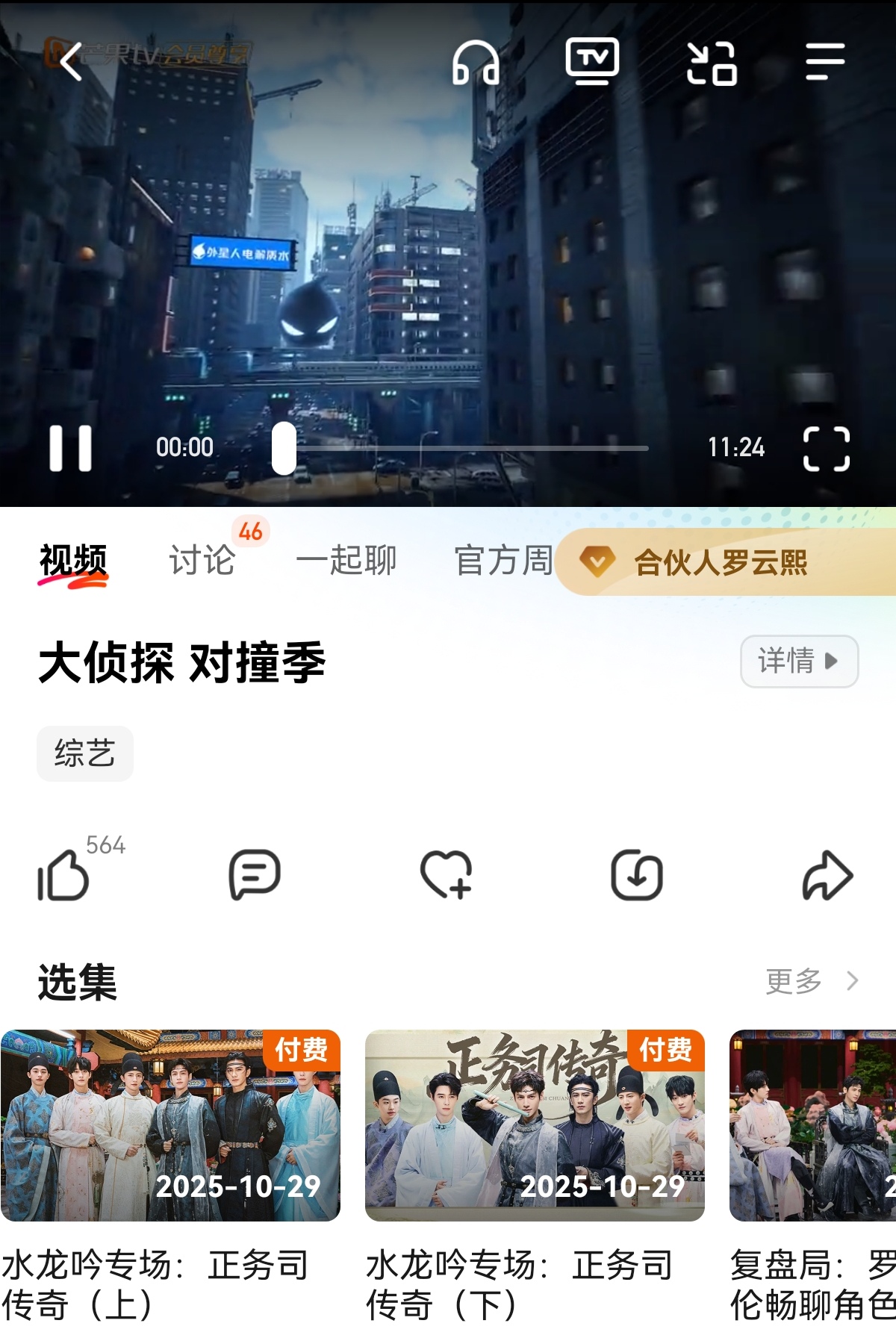 爱看大侦探的剧迷们和水龙吟的剧粉,也可以去看 大侦探 对撞季;它与大侦探的区别就是,热门电视剧会专门出一版大侦探,由大侦探的主持人和电视剧演员一起破案。可恶的是,即使是会员,也得付费12元去看专场。芒果你也太会赚钱了,我得N刷才能回本啊~