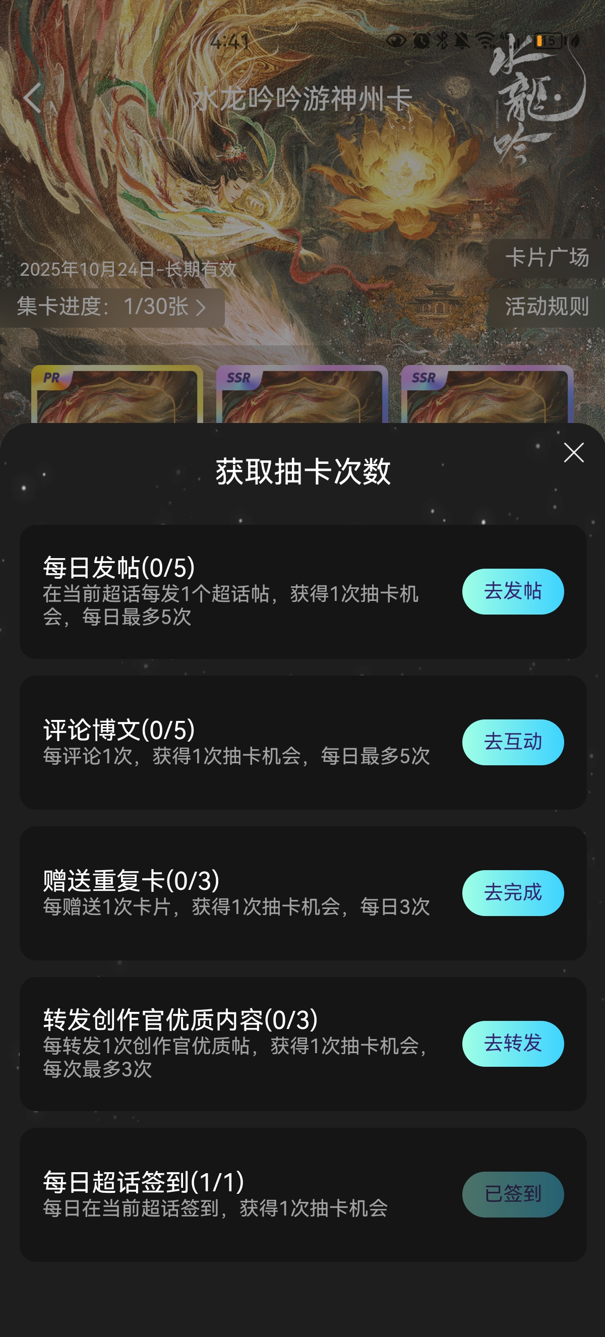 像微博,也有水龙吟线上集卡(虚拟)活动。我感觉意义不大,可能我是其中一个群体(已放弃微博,转向小红薯、抖音的群体吧),玩微博频率很低。可能集卡,可以参与水龙吟超话活动吧