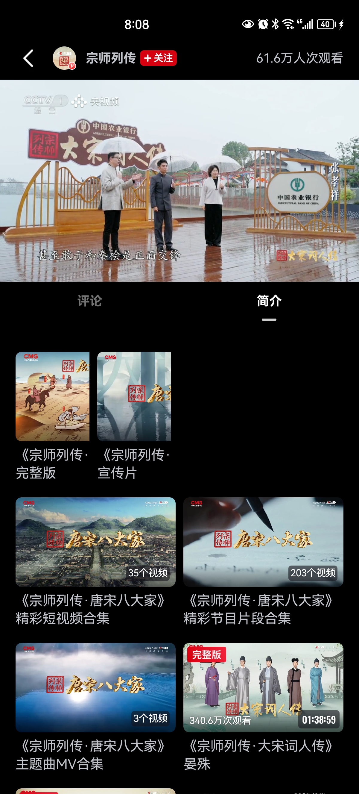 最近在看大宋词人传,推荐的是张孝祥这期。像央妈提前1-2天会发布微博、抖音,敬请锁定周六CCTV-1综合频道22:00档,也可以去央视频APP预约直播。大宋词人传,也由中国农业银行赞助;也会有主创团队中的文史专家。