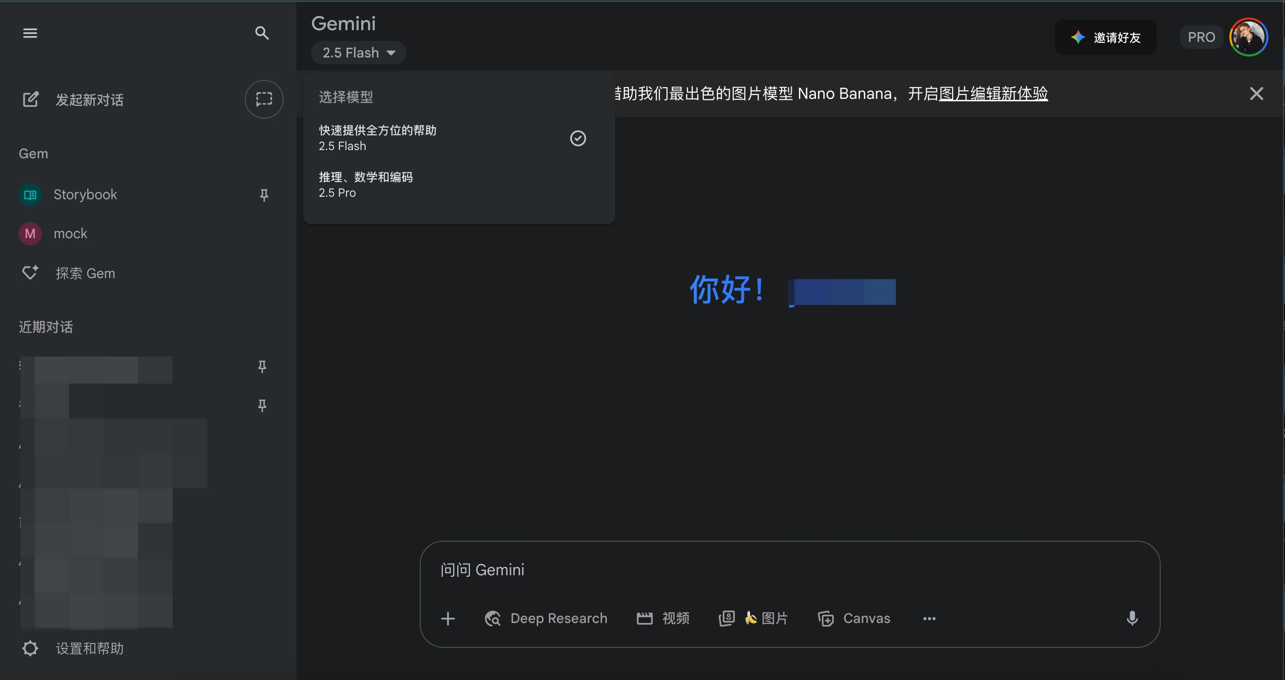 自从ChatGPT开创了和模型通过对话交互这一体验形式,后来几乎所有通用型的C端AI应用都采用这种设计。Gemini也一样,他们都在左侧罗列功能和对话历史,右侧展示聊天界面。不过在细节上展示出区别。