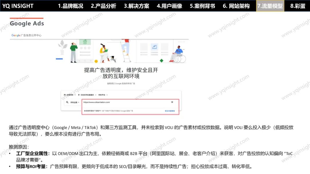 第四,客户触达:VOLI 的客户触点现在主要依赖员工的社交关系链,扩展性和可复制性都很差。相反,成熟品牌会通过广告引流、SEO 优化、再营销等方式,把企业账号打造成统一的客户入口,再由销售承接。这就是为什么 VOLI 的社交账号无法沉淀有效客户关系。