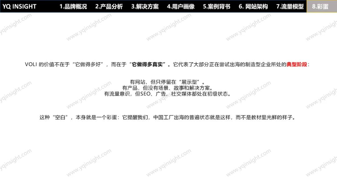 所以,VOLI 的“无彩蛋”,本身就是最大的彩蛋。它提醒我们:大多数中国工厂的出海之路,正是从这样一个简陋的官网开始。
