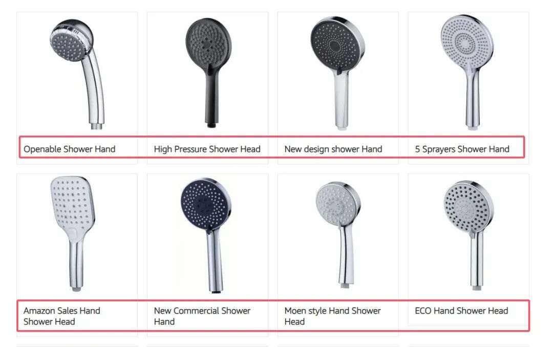- 命名方式:功能直译,如HighPressureShowerHeadCustomKitchenFaucet,明显为了覆盖外贸关键词。
