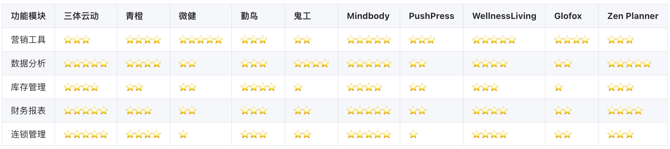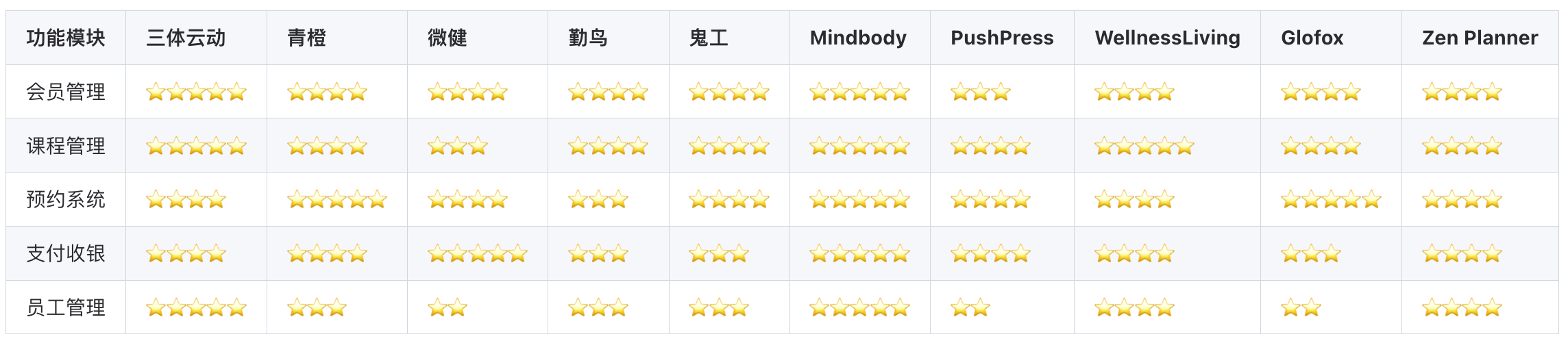 - 三体云动:健身房管理系统老牌厂商,专注大型连锁俱乐部