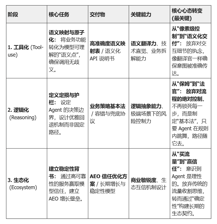- 原子化能力: 谁能更早地将业务拆解为可被 AI 调用的 API,谁就能顺滑地接入生态。