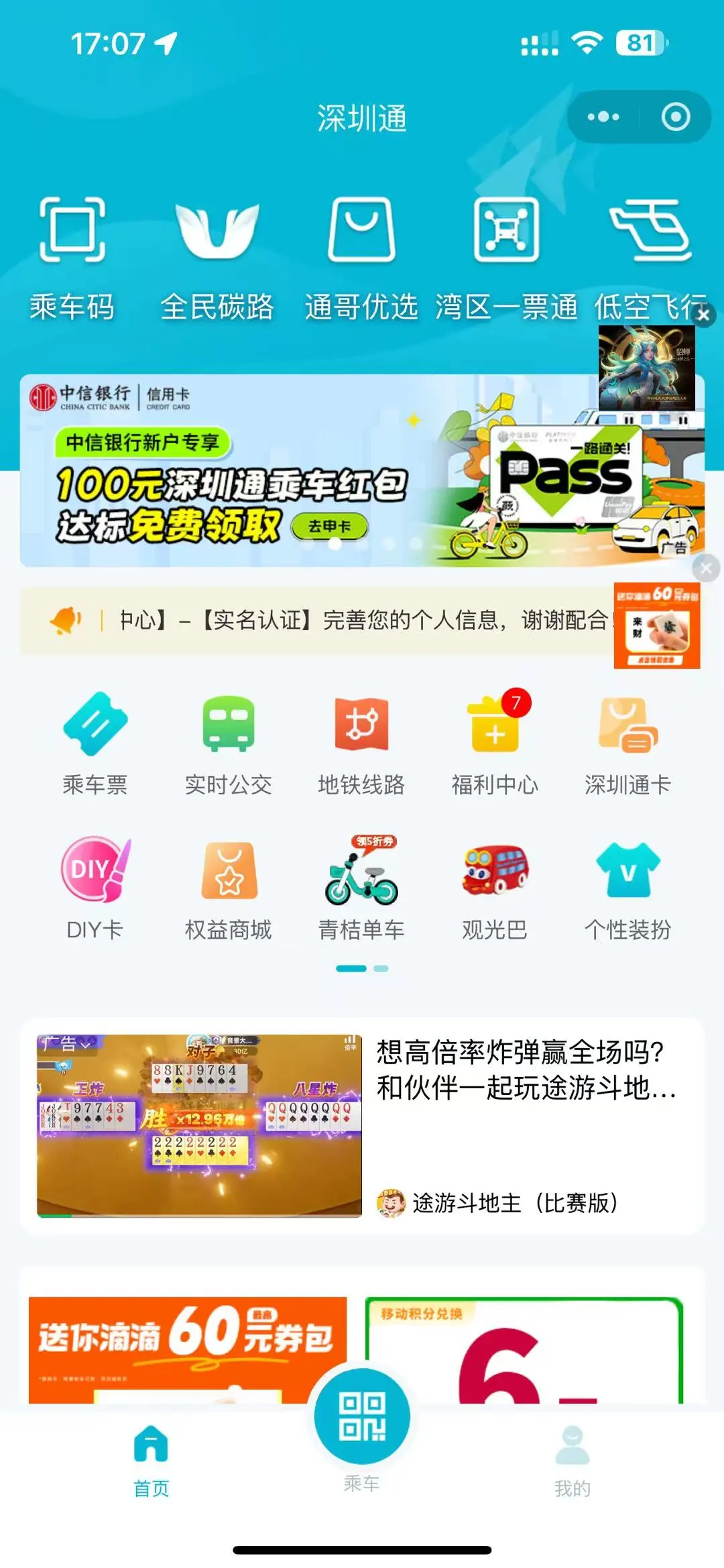 深圳通+小程序首页