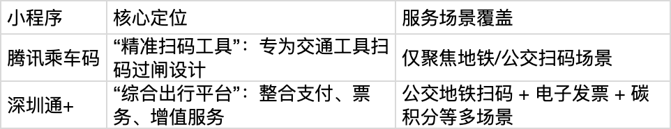 深圳通+小程序与腾讯乘车码的差异本质上反映了两种不同的产品策略: