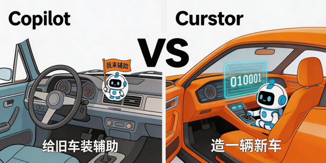 GitHub Copilot像是给你的汽车装了个辅助驾驶功能。Cursor是直接给你造了一辆新车,方向盘、油门、仪表盘全部为自动驾驶重新设计。