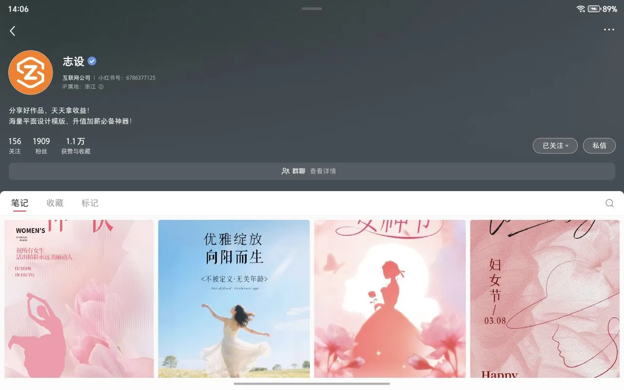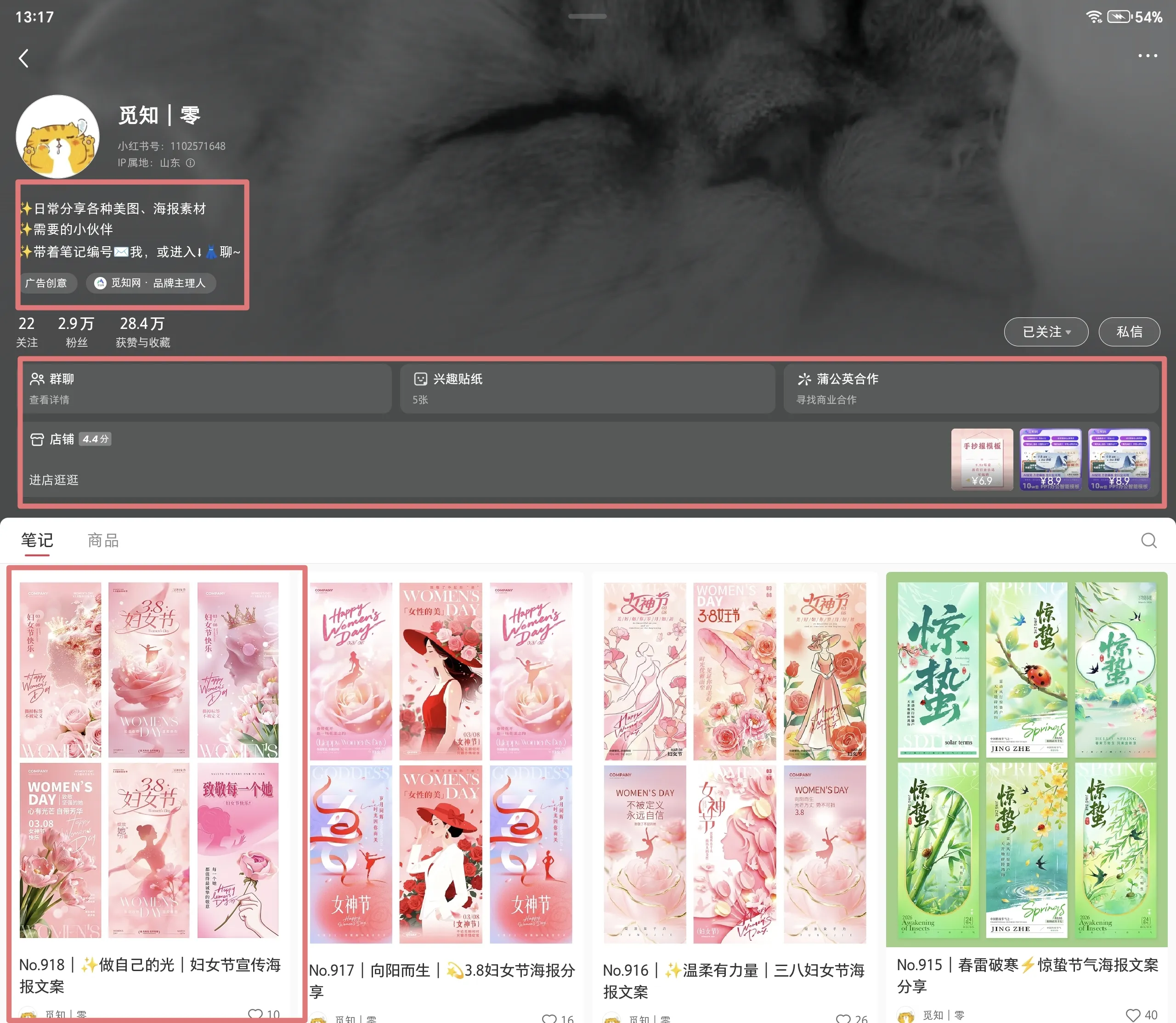 设计趋势海报中可以很自然的植入网站网址引流,注意必须是蓝v认证过的,小红书对引流营销行为的力度比较松,个人账号如此操作有封号风险。
