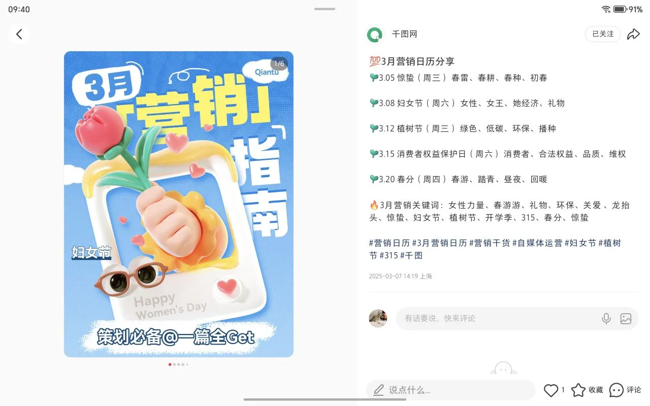营销月历分享,平台本身都会制定热点素材手册,做成笔记分享算是素材复用,也再次强调品牌的专业属性,给用户靠谱的感觉。