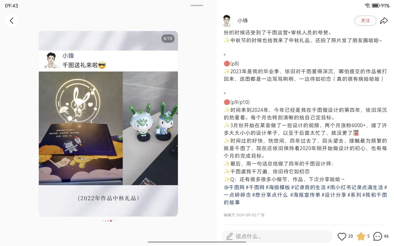 设计师:小锋,分享和千图网的故事温情又走心,收获很多真实评论,对品牌评价有有正向收益。