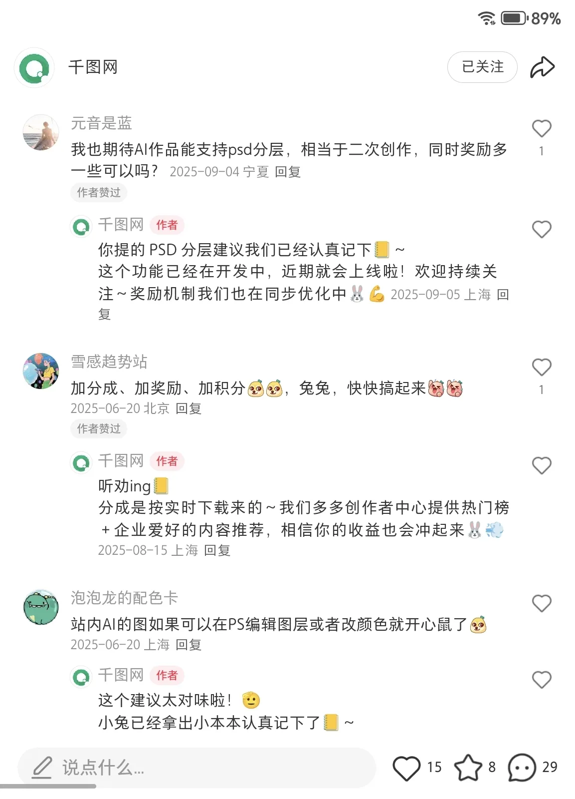 积极回复,有评论有回答,让读者感受到被看见。年度设计师栏目将官方和供稿设计师联系起来,分享不同设计师的创作风格,即是给设计师增加曝光机会也会因为有读者喜欢设计师而对品牌有好感,是一场双向奔赴的成全。