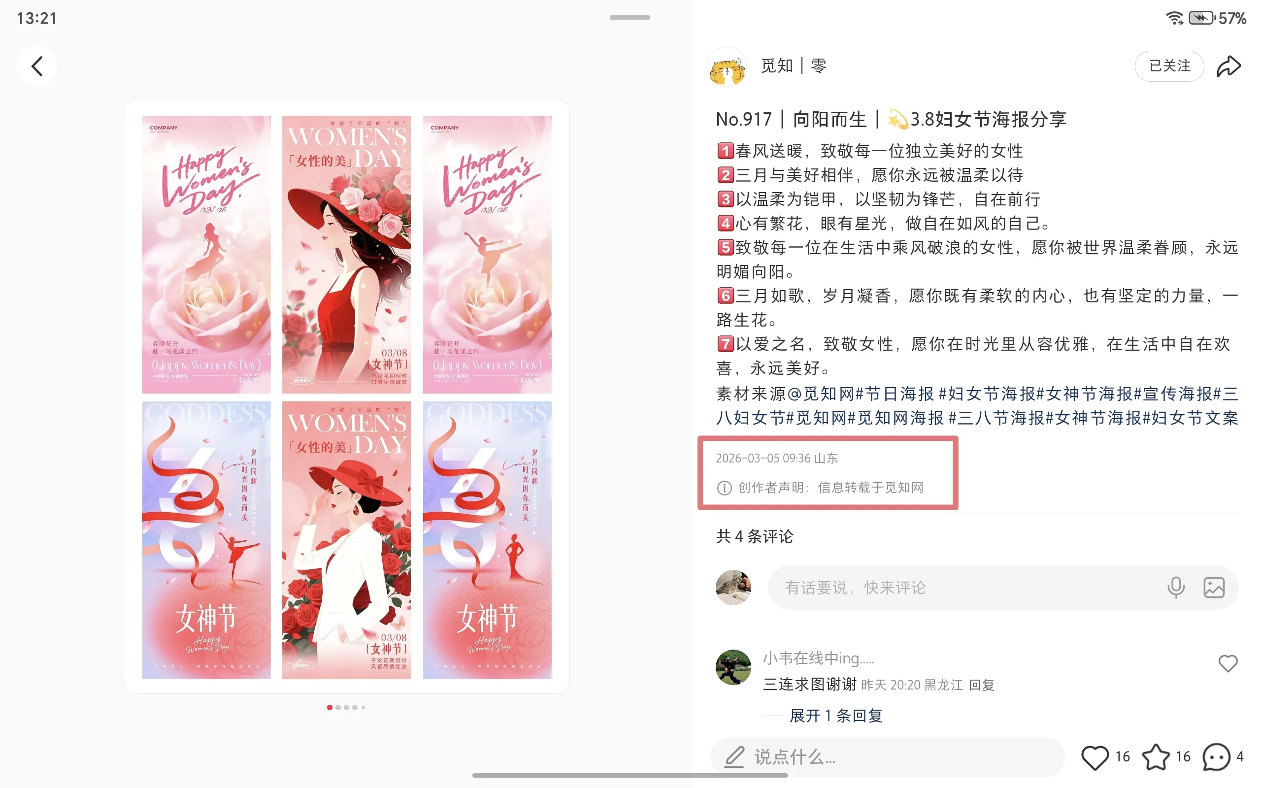创作者声明标明素材来源,既彰显了创作者版权意识也是给觅知网引流。