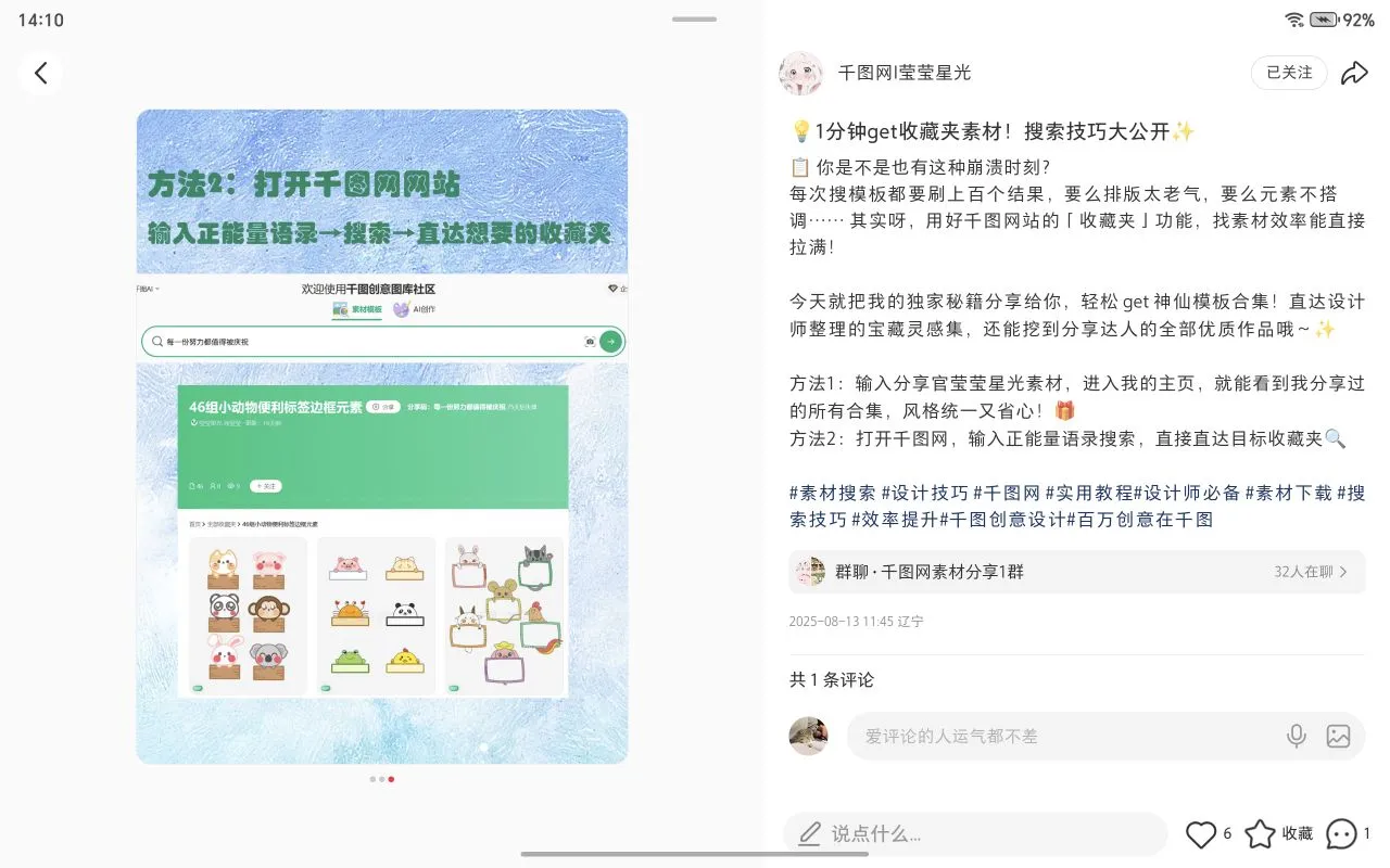 路径:推荐官笔记(置顶教程)→ 引导“打开千图网搜索‘收藏夹XXX’” → 用户自行搜索 → 进入推荐官收藏夹 → 下载/关注