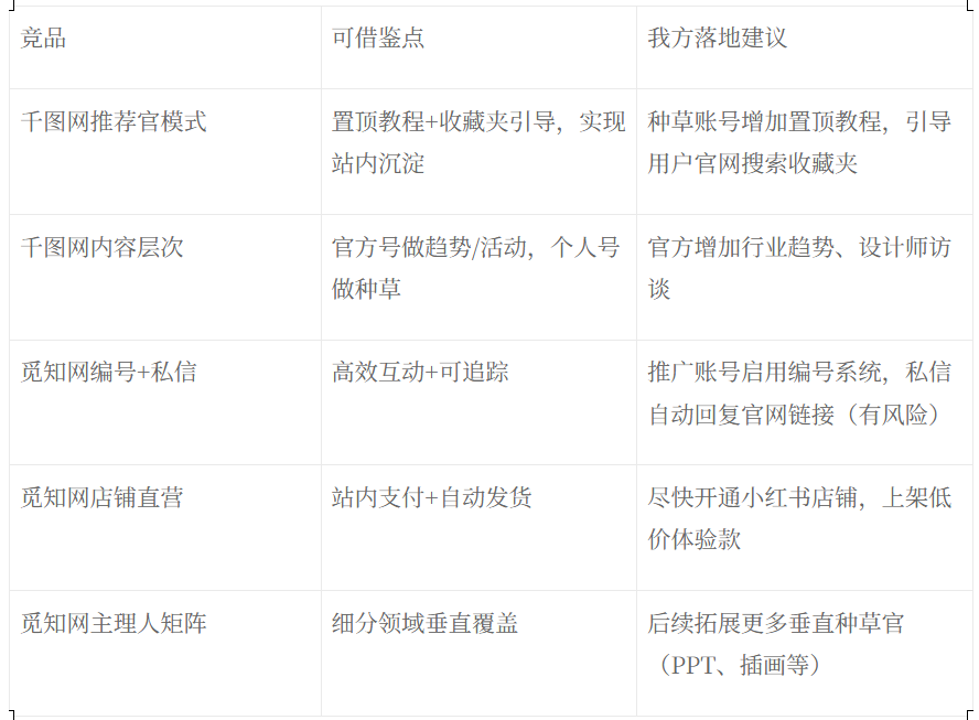 千图网和觅知网分别代表了“平台粘性优先”和“私域掌控优先”两种路径。千图网用“推荐官+收藏夹”做站内沉淀,运营成本低、可规模化复制;觅知网用“主理人+编号+私信”做私域收割,用户粘性强、转化可追踪。
