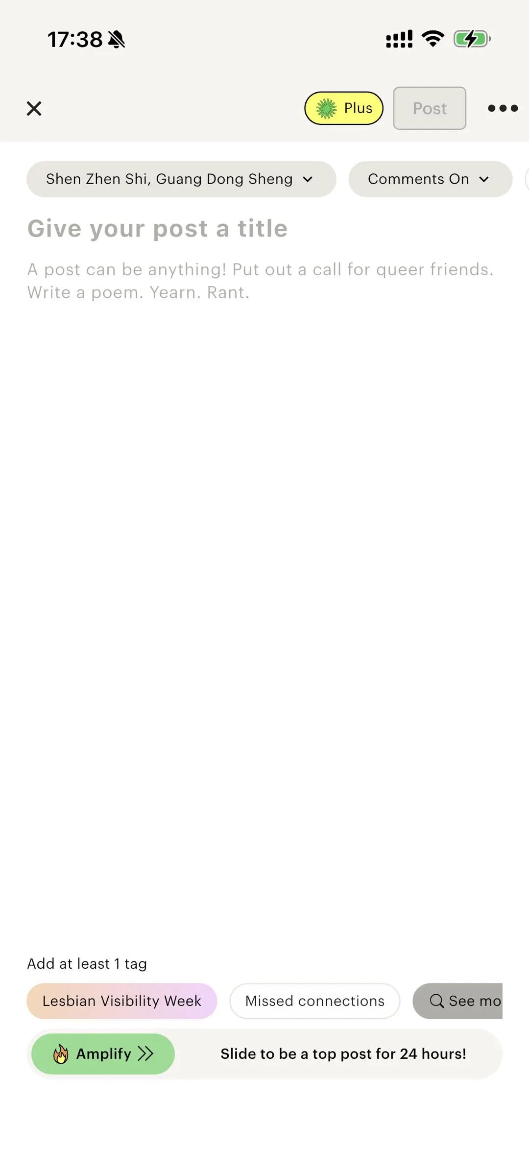 在这里,你几乎发不了照片——用户只能写一段限制字数的文字描述(类似以前报纸中缝的征友广告),比如“寻求一起喝咖啡的短发酷儿”、“最近在听某某乐队的 ENFP”,并且必须带上 PGC 标签才能发布在公域。
