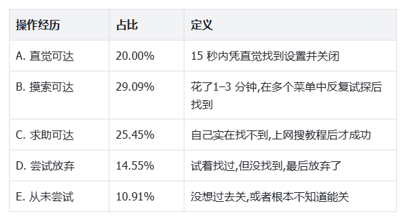 核心发现:72.73%的用户知道能自定义首页,但仅49.09%真正成功,23.64%的落差 是路径成本导致的用户流失。