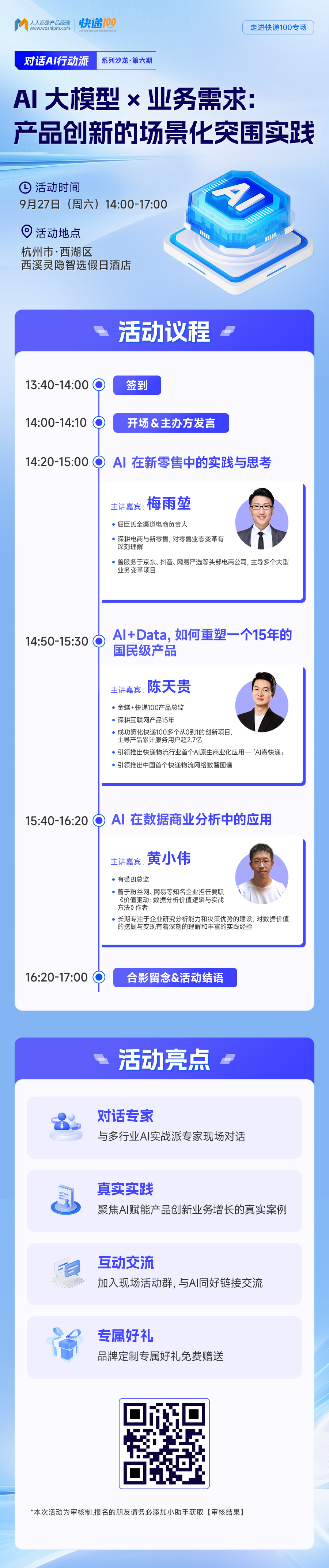 9月27日,相约杭州,与AI实战派共同探索产品创新的场景化突围之路,打造真正为用户创造价值的AI产品!