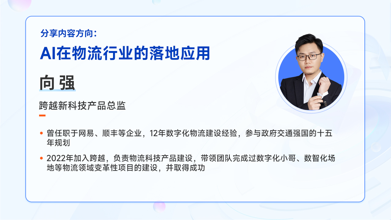 大会将聚焦“AI+行业”的探索与落地实践,分享AI在物流、音视频、内容、数字化、工业制造、大数据、协同办公、出海、智能硬件等等领域的具体实践。