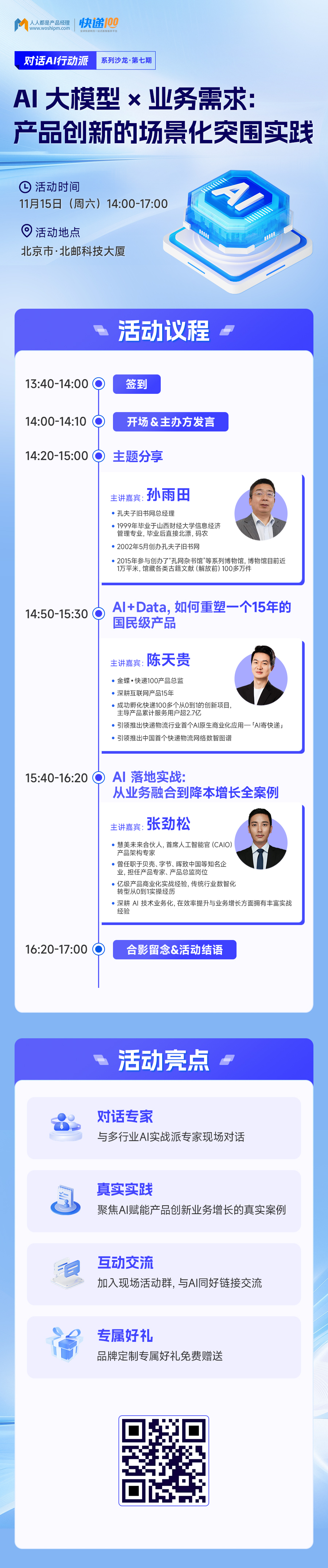 这一次,我们瞄准的依旧是那个最核心的命题:技术,如何才能真正嵌入业务流程,创造可持续的价值? 我们希望为京津冀地区的产品、运营与技术人们,带来更贴近北方产业生态的实战方法与人脉资源。