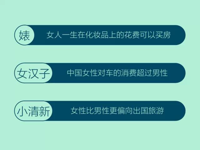 除此之外,还有更多令人吃惊的数据。譬如,女人一生在化妆品上的花费可以买房;又譬如,中国女性对车的消费超过男性;再譬如说,女生比男生使用手机的时间更长,而女性比男性更偏向出国旅游;甚至,美国最新的调查显示,成年女性游戏玩家已经超过未成年男性,女性在游戏界的地位已“逆袭”……新女性,不知不觉间已经成为互联网商业的第一动力。