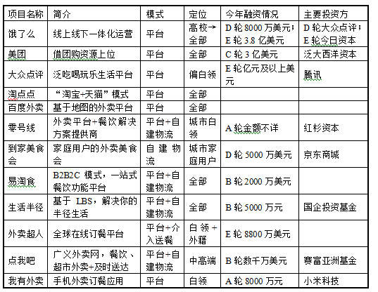 2013年底阿里巴巴推出移动餐饮服务平台淘点点,几乎同一时间测试上线的美团外卖北京主站吹响了美团进军外卖O2O市场的号角,到2014年4月百度外卖隆重登场,5月大众点评以8000万美元入股“饿了么”并达成深度战略合作,共享外卖领域的商户数据和平台流量,整合外卖服务。