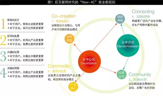 不仅仅止于此,在后移动互联网时代,从用户的“价值创造”和企业的“价值获取”两个视角出发,我们可以构建出一个全新的“4C”模型: