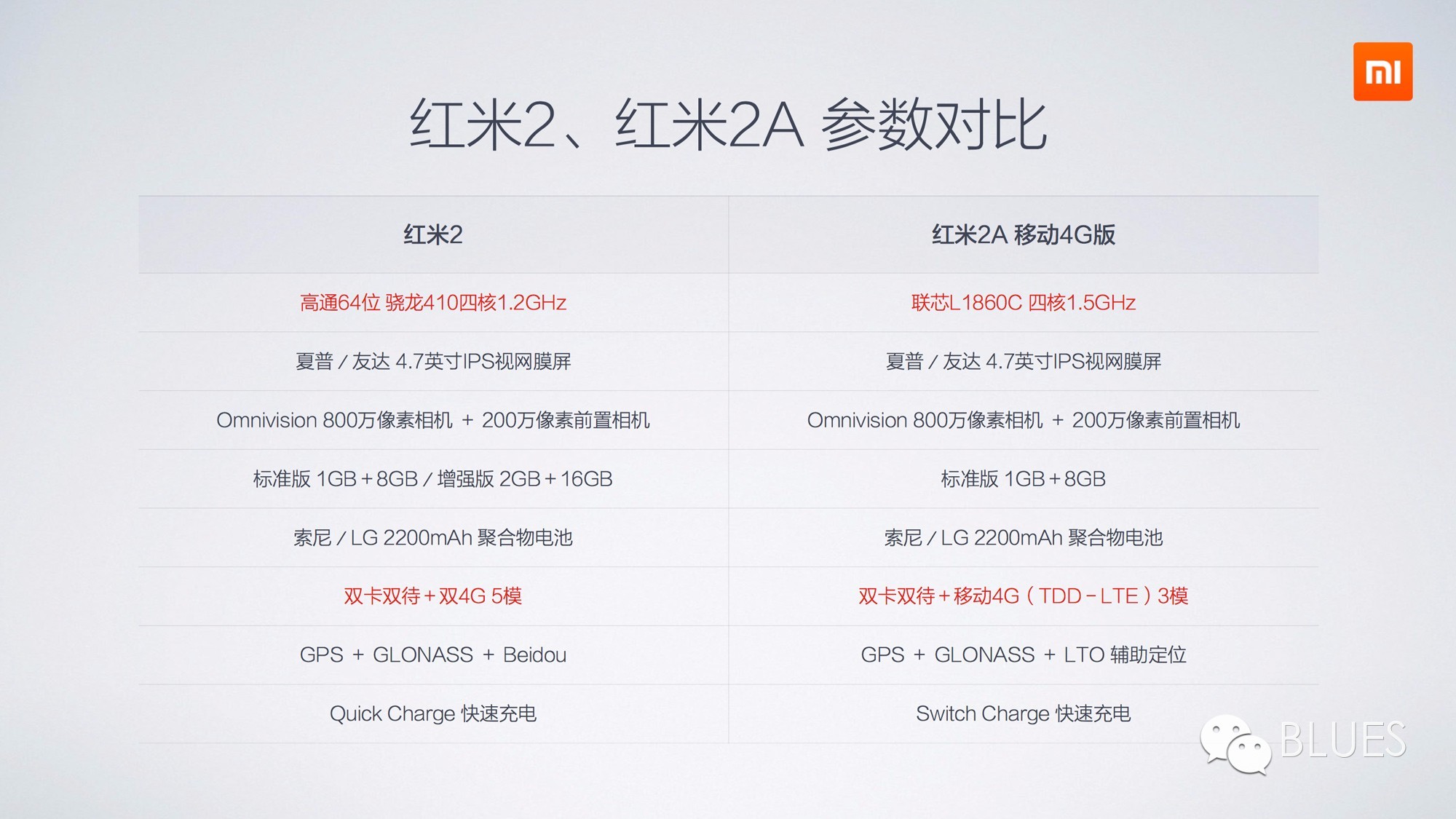 今天这个2A看起来跟红米2是一样的,它做了什么样的优化呢?我们来看一下,它依然用了移动4G双卡双待,4.7寸屏,800万非常好的象素,2200毫安时的索尼电池等等。它优化了什么呢?