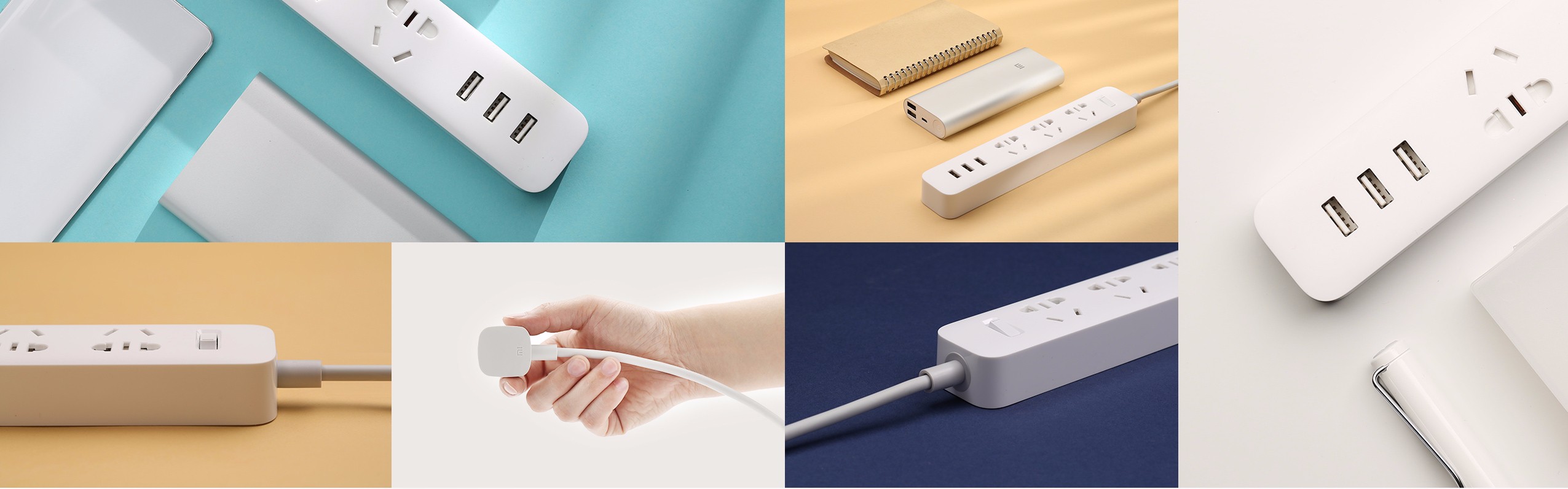 我们看一下功能,三组有两项三项的国标插孔。第二,三个标准的USB,其实你们在市场上很少看到三个标准的USB的,你们想知道一般的是两孔的,我们为什么要做三孔的呢?是因为两口之家晚上愿意用手机,要充电吧,还有,你可能有平板、你可能有电脑、你可能有移动电源,这些全部要充电的。所以,我们算来算去,也做了大量的研究,三个孔是最基准的,所以,我们做了三个孔。更重要的是把这三个孔全部对整齐很难的,真的很难,我不好意思说同行不好,你看看他们做的乱七八糟。其实我做手机这么多年,有时候大家就说你能说你的手机跟别人的手机怎么比吗?我说很简单,我把耳机孔放正了,除了苹果,还真的没有放正的,很多细节我们是花了巨大的投入的。还有,支持110—240伏的全电压,跟小米平板、小米Note、小米移动电源摆在一起就像相亲相爱的一家人,真的很漂亮。