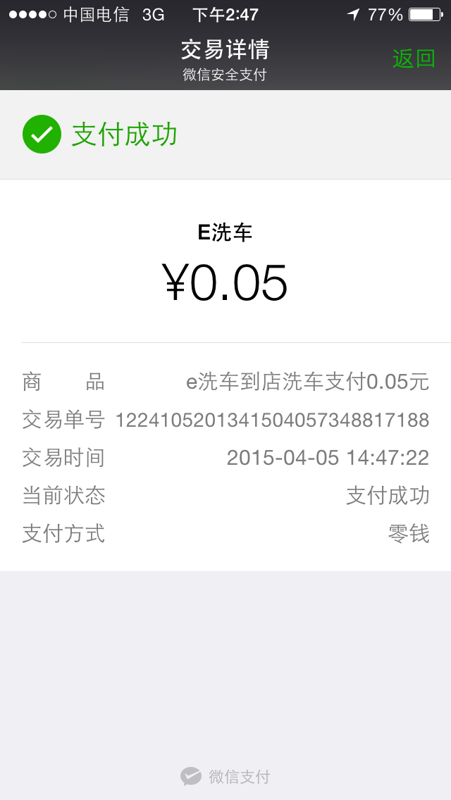 E洗车的支付还是十分方便的,可以直接选择微信支付跳转至微信。这也许是使用过程中唯一值得肯定的功能。