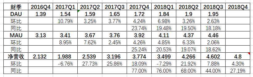 短短4年时间,微博实现了营收翻两番的雄伟目标,效率非常可观。2016Q4,微博平均从每个月活用户身上赚0.68美元,而不到两年后的2018Q3,这个数据达到1.03美元,增加了51%。