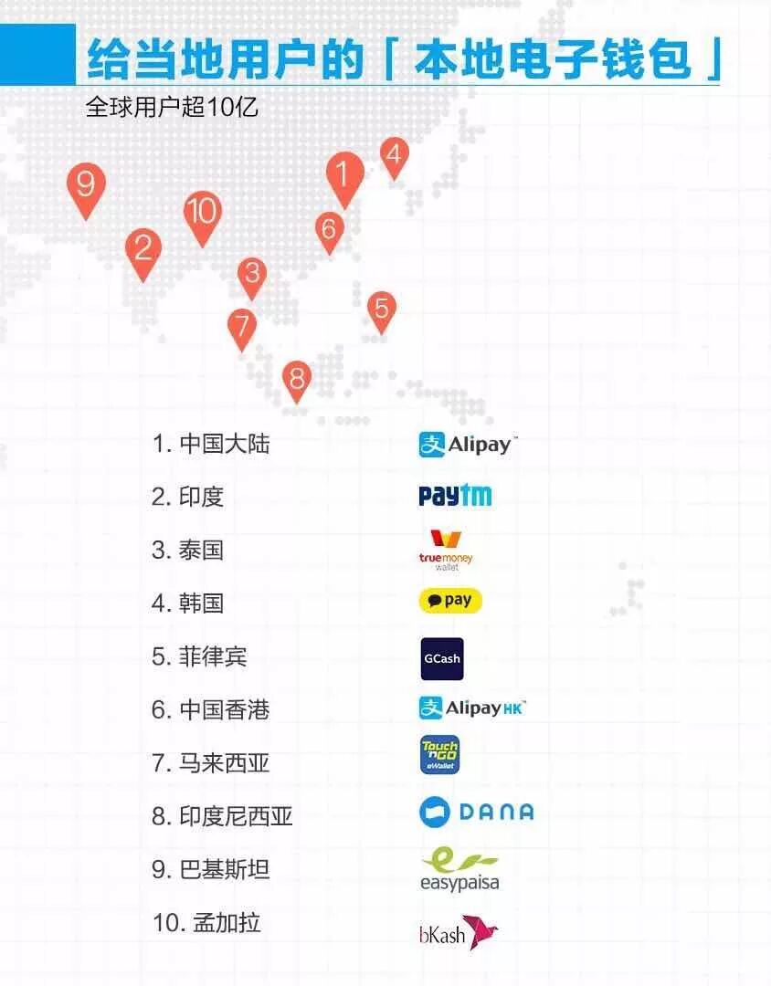 以2015年2月与印度电子钱包Paytm达成战略合作为起点,截至2018年底,蚂蚁金服在“一带一路”沿线9个国家和地区布局了9个本地电子钱。