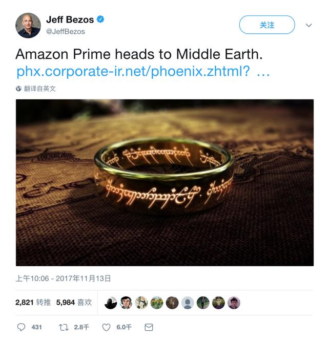 亚马逊花了2.5亿美元买下《指环王》的全球版权,剧集制作预算也高达10亿美元