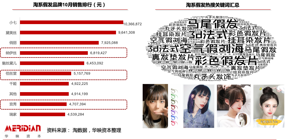 在淘宝上,月销量2万件以上的假发垫、假刘海比比皆是。无论是马尾假发、空气假刘海、彩色假发片……淘宝上各式假发,总有一款能满足你的需求。