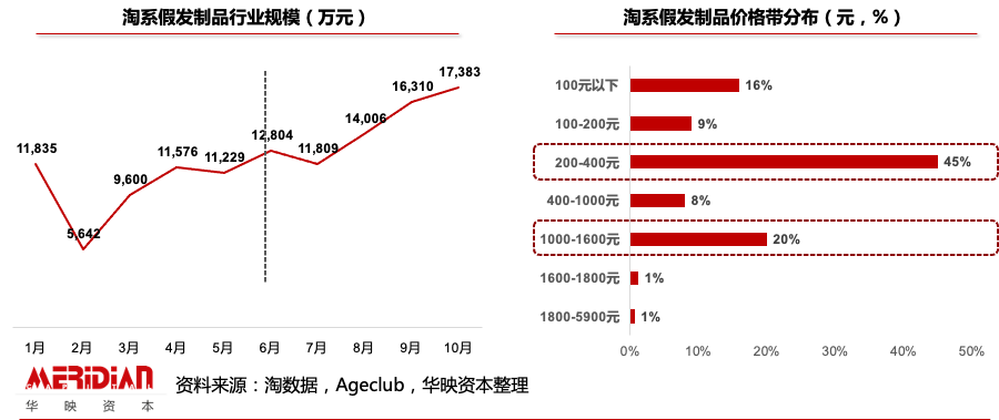 价格带分布来看,目前低端产品以200-400元为主流价格带,中高端产品以1000-1600元为主要价格带。当口罩封印了颜值,假发和假发片成为今年的黑马赛道。