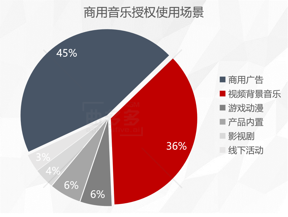 商用音乐对应的场景极为丰富,从影视综艺、自媒体/MCN内容制作,电视广告、企业宣传等广告营销,汽车车载、智能家居等终端内嵌以及商场、超市、酒店等线下公播(即公播音乐场景),这些地方的版权在国内长期处于免费、或者近乎免费的情况。