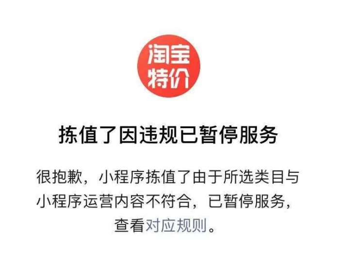 早在春节前夕,就有相关媒体报道称阿里旗下的淘宝特价版,在微信上线了一款名为“拣值了”的小程序。小程序以拼多多的拼单模式主打“1元福利购”,支付功能只有微信支付。短暂上线以后,很快就被暂停服务,至于原因是淘宝方面主动下架还是被腾讯封禁都未可知。