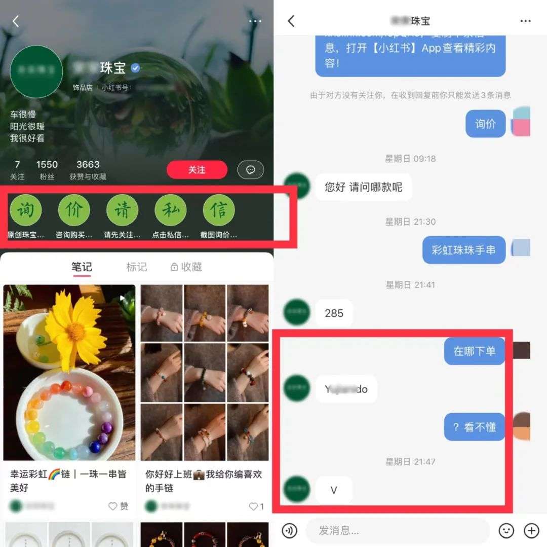 虽然小红书对非报备型营销推广内容进行限流,但仍有部分营销型笔记获得了极好的流量。部分博主通过暗示私信等方式,诱导用户添加微信,在微信进行转账交易。