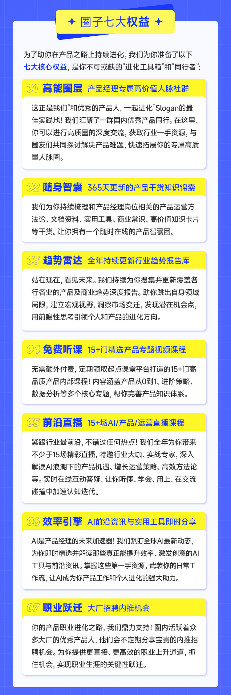 我们相信,当一群怀揣产品热情的人彼此赋能,就能在职业道路上走得更稳、更远。下图是圈子的介绍,感兴趣可以加入哟!