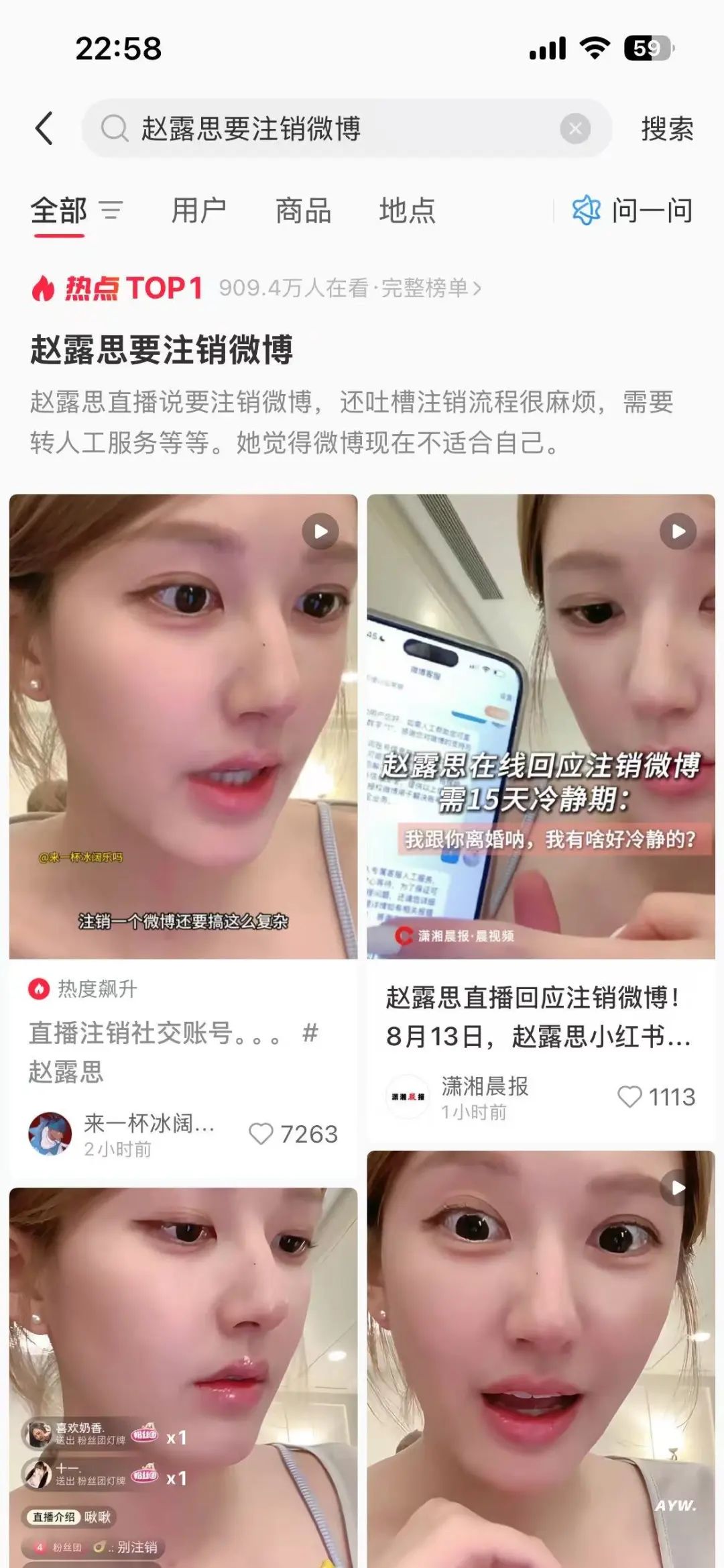 昨夜,“赵露思要注销微博”的词条在小红书热榜第一挂了一晚上。点开热搜词条下的第一条帖子,排名前列的评论写着,“啥时候注销小红书”。赵露思女士在直播中大骂微博是厕所,但仔细观看她在小红书的评论区,每一条留言也都是充斥着“宝宝加油”,和微博也没有什么两样。