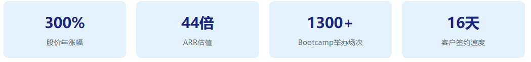 如上图,更让人羡慕的如 Altimeter 收入增长依旧保持26%的增长,81%的毛利率和 37% 的净现金流率,有个百万级订单的客户签约天数仅有惊人的16天!似乎颠覆了B2B企业购买决策时间长的铁律。他是怎么做到的呢?答案是用AIP(Artificial Intelligence Platform)Bootcamp(AI训练营)。