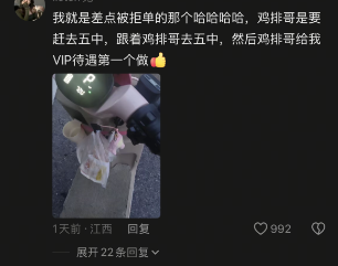 而用户的 UGC 内容,则是他营销闭环的核心。网友会拍 “4:15 分他骑车快速赶往五中的身影”“他与顾客开玩笑的对话”,这些内容带着 “个人体验” 的真实性,比官方宣传更有说服力。比如 “鸡排哥 4:30 拒散户” 的话题,因网友拍摄的 “学生蜂拥而上、散户被拒绝” 的场景,在抖音播放量达千万,直接带动线下排队人数翻倍。