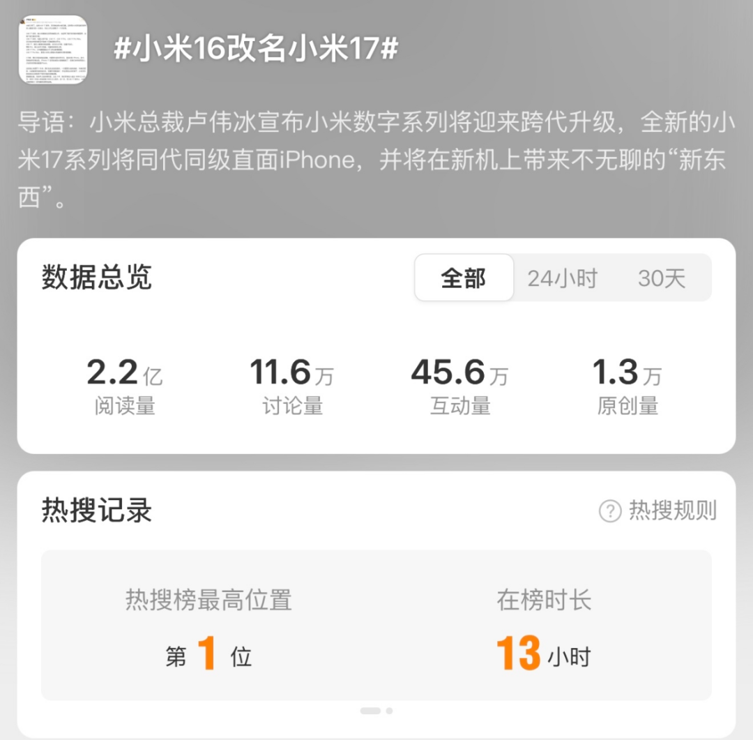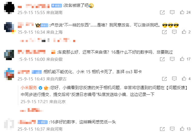 综合这部分用户的心理,他们认为新品跳过16改叫小米17的行为,是对小米自身品牌力的一种否认,因为真正的行业龙头是不屑于对标任何品牌的,而总是拿自己跟别人作对比,本身就透露出一种的不自信。