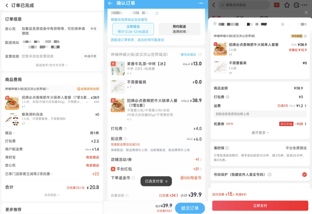 我们注册了三个全新账号,从刚需午餐、高频奶茶和闪送药品几个层面,分时段点单,尽量在相同环境的变量下提供真实的对比数据,看看到底哪家平台速度更快、价格更低、体验更好。