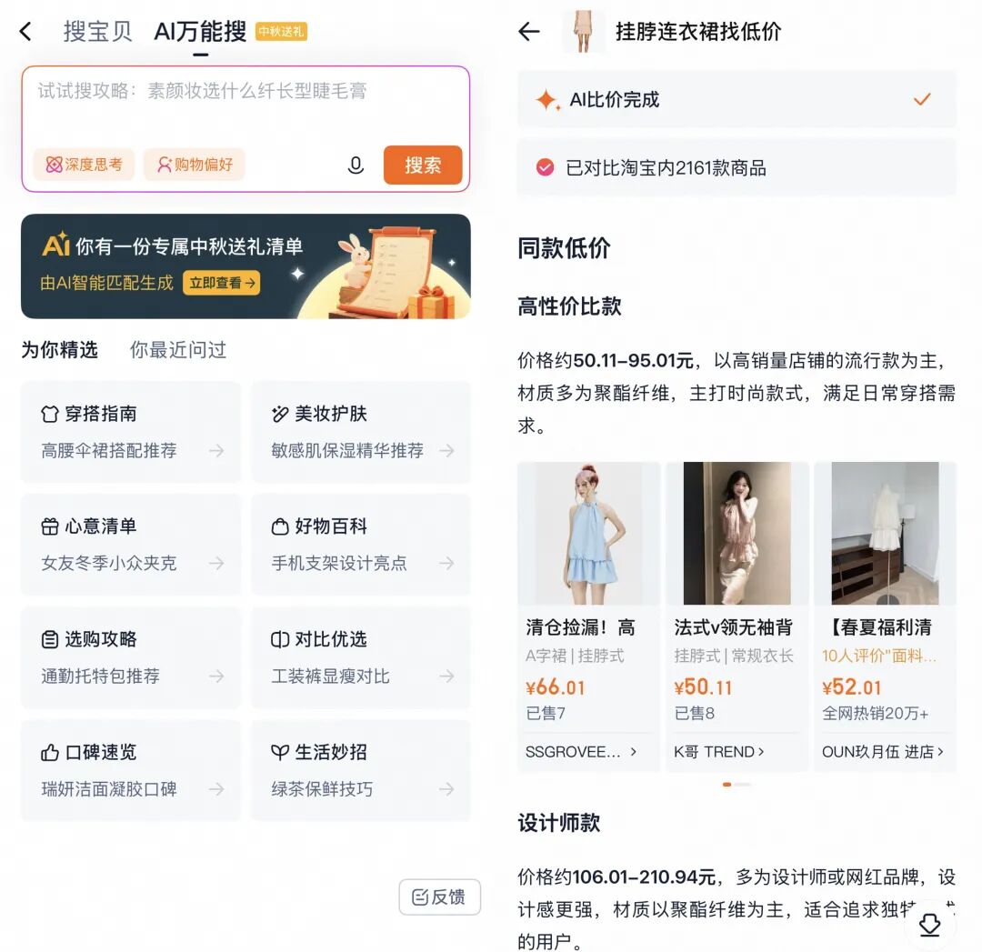 淘宝“AI万能搜”、“AI找低价”