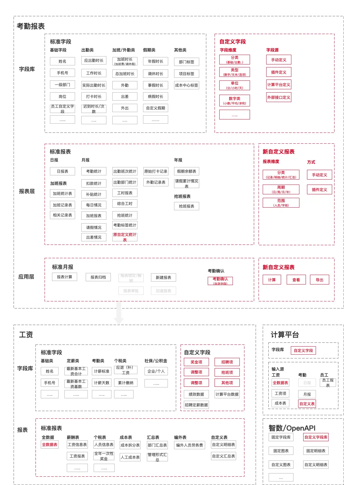 - 收敛关键需求:最终聚焦于两个核心:自定义字段和自定义报表。