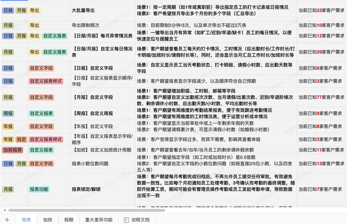 - 需求最痛:报表需求占比高达21.3%,是客户最迫切的。