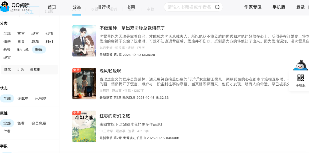 毕竟,当下的短故事还有个绕不开的问题是“内容同质化”。翻来覆去都是“甜宠虐恋”“职场逆袭”“悬疑反转” ,有读者开玩笑说:“那几套现在看短故事,光看开头就能猜到结尾,新鲜劲过了就不想追了。”
