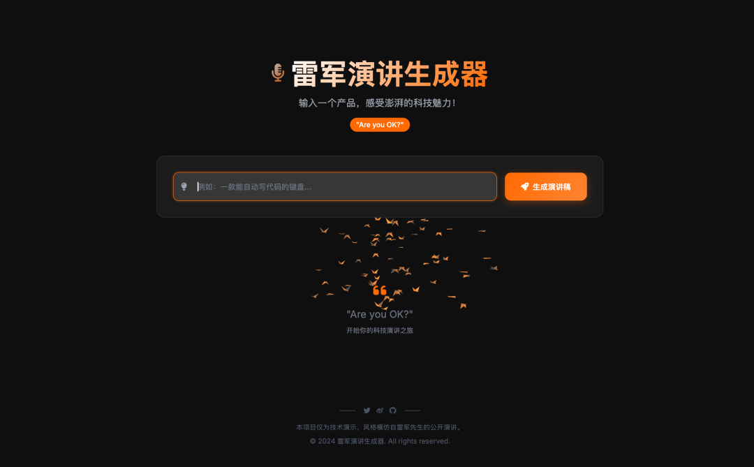 公众的逆反心理也越来越重。十年一回顾尚能理解,一年一回顾就有些疲劳。过去一段时间,互联网上甚至流传出一些借用大模型制作的“雷军演讲生成器”,只要输入特定的产品和内容,就能输出一段符合雷军风格的演讲稿。